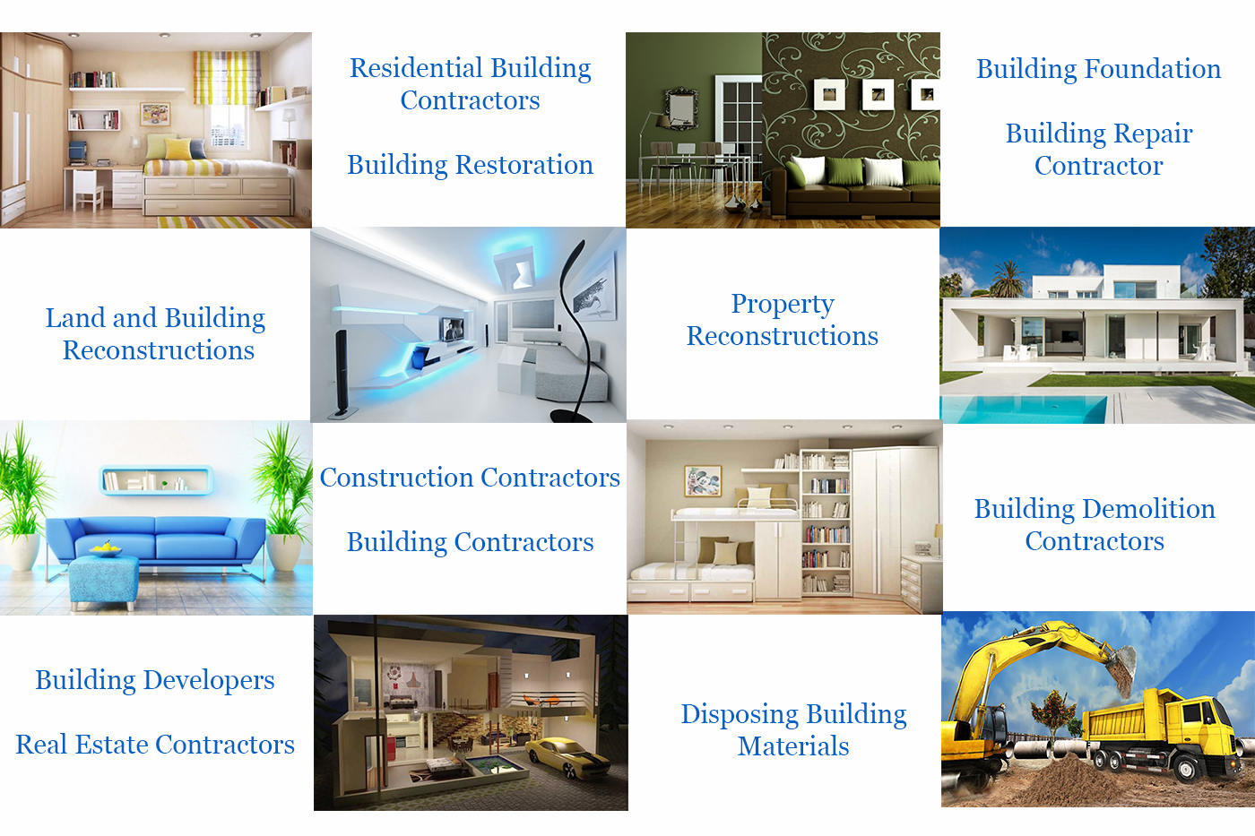 One can contact us for Building Restoration, Building Foundation, Building Repair Contractor, Building Developers, Disposing Building Materials, Property Reconstructions, Building Demolition Contractors, Construction Contractors, Real Estate Contractors, Building Reconstruction, Land Reconstructions.